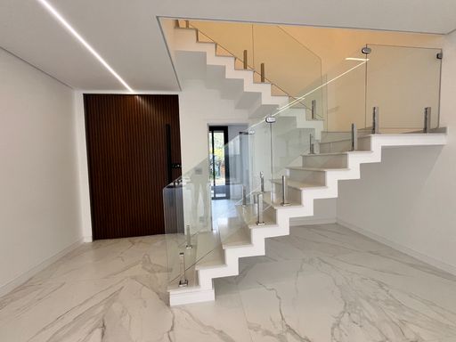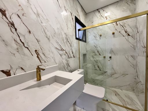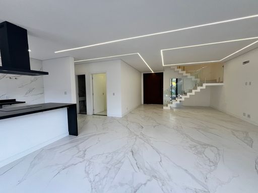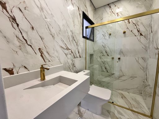O acabamento é de alto padrão, com atenção a cada detalhe. Conta com aquecimento a gás, cozinha equipada com coifa e cooktop, piso em porcelanato nas áreas sociais e laminado nos dormitórios. O teto em gesso com luminárias em LED valoriza os ambientes, e as esquadrias em alumínio preto reforçam o estilo moderno. Uma das suítes possui banheiro diferenciado, com parte do teto em vidro, permitindo entrada de luz natural. Na entrada principal, a fechadura eletrônica traz mais segurança e praticidade. O acabamento externo em pedras naturais confere exclusividade e sofisticação ao imóvel.