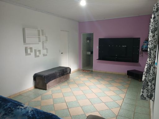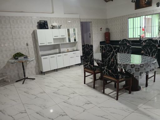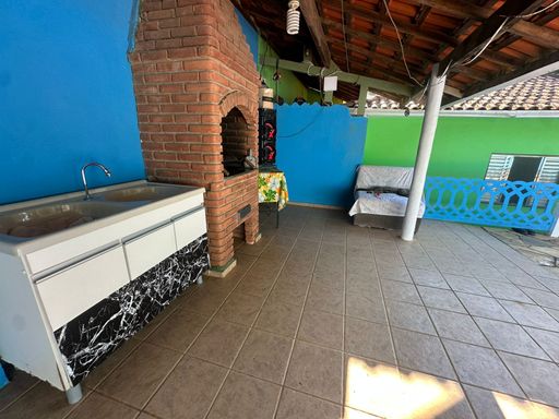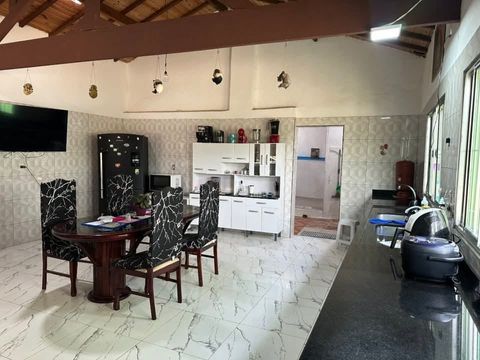 Casa principal com hall de entrada, cozinha com móveis planejados, sala, 3 dormitórios, sendo 1 suíte e 1 com closet, além de banheiro social. Possui área gourmet acoplada, forno e fogão a lenha e lavanderia.