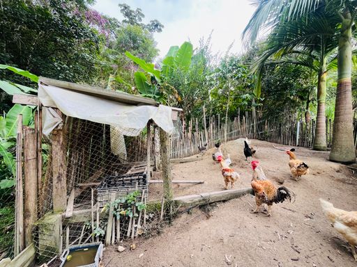 A propriedade dispõe de área de plantio produtiva, pomar formado, galinheiro e barracão de apoio, oferecendo estrutura funcional tanto para moradia quanto para atividade agrícola. A casa principal é simples e aconchegante, composta por 4 dormitórios, sala, cozinha caipira externa, banheiro externo e garagem, atendendo perfeitamente ao uso imediato enquanto novos projetos podem ser desenvolvidos.