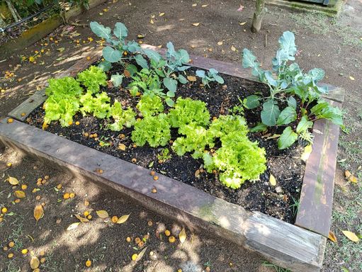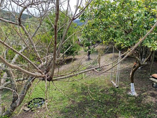 Pomar em produção com diversas frutas: nêspera, laranja, manga, jaboticaba, amora, limão rosa, banana nanica, jambolão, goiaba, abacate, siriguela, limão siciliano, mixirica azeda, carambola, mixirica poca, acerola, banana pão, uvaia e jaca