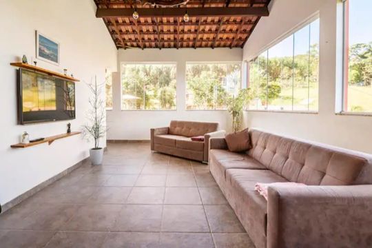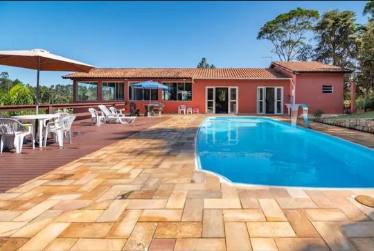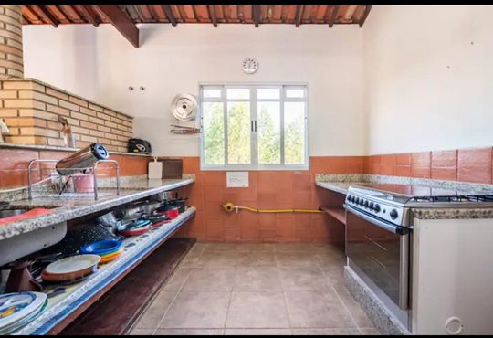 A propriedade conta com sauna seca e a vapor em pleno funcionamento, piscina aquecida, salão de festas, área ampla e cozinha caipira coberta com fogão a lenha, forno e churrasqueira.