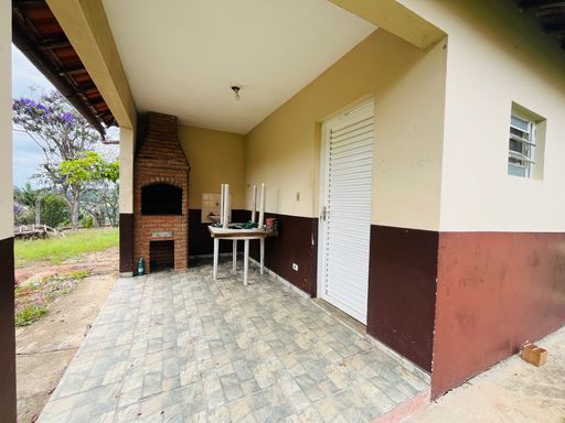 A propriedade possui infraestrutura completa com poço, fossa, energia elétrica e internet instalados. A casa é de laje, coberta com telha, oferecendo estrutura sólida e maior conforto térmico. Conta com 3 dormitórios, sendo 1 suíte, banheiro social, banheiro externo, área de serviço, além de salão de festas ideal para confraternizações.