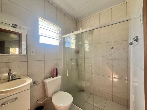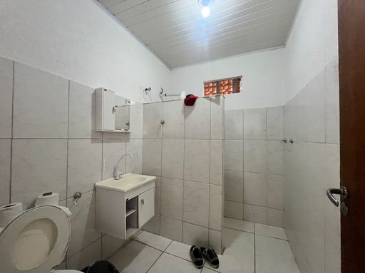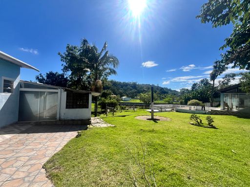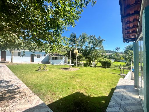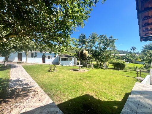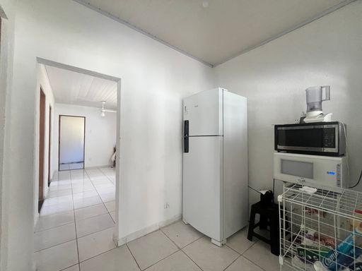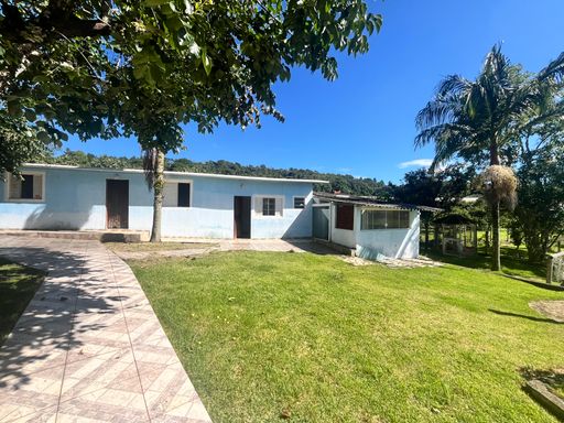 A casa principal possui sala, cozinha, 3 dormitórios (sendo 1 suíte) e banheiro social.