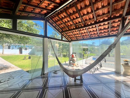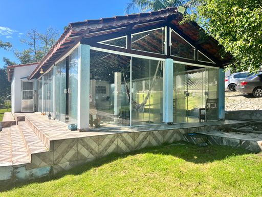 Dispõe ainda de 4 dormitórios externos, todos suítes, proporcionando conforto e privacidade para hóspedes ou uso comercial. Área de churrasqueira externa integrada ao espaço de convivência.