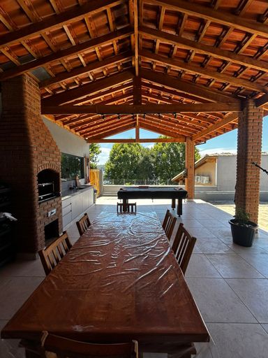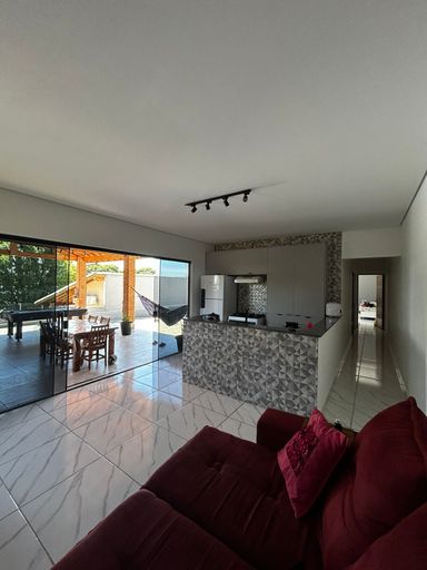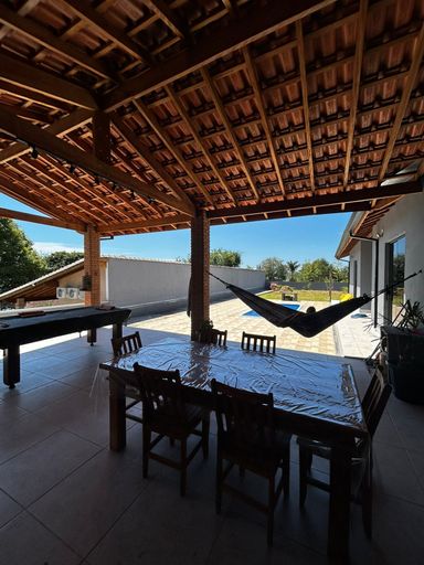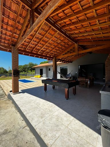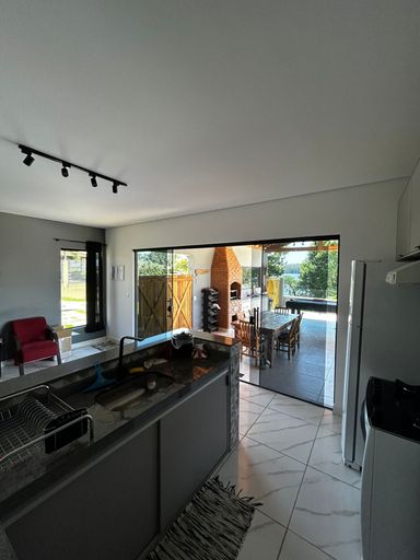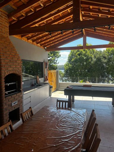 Casa moderna com vista para a represa, com uma suíte, um dormitório, sala e cozinha integradas à área gourmet com churrasqueira e piscina. Garagem para 8 a 10 carros, poço, energia elétrica e internet.