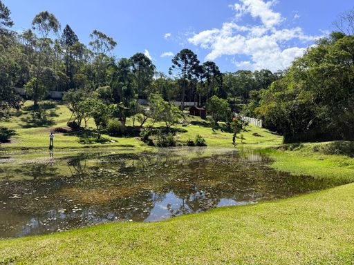 Lago com espelho d’água de 1.000 m² — um verdadeiro cartão-postal da chácara!