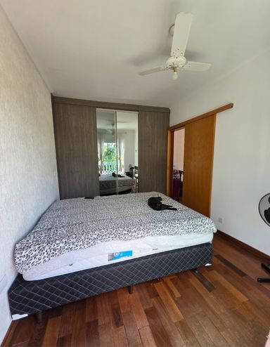 Na parte superior, conta com 3 dormitórios, sendo uma suíte master com closet, sacada e piso em madeira. A escada dá acesso a uma ampla sala de estar e jantar, com sanca, iluminação projetada e uma elegante porta balcão em vidro, proporcionando excelente iluminação natural.